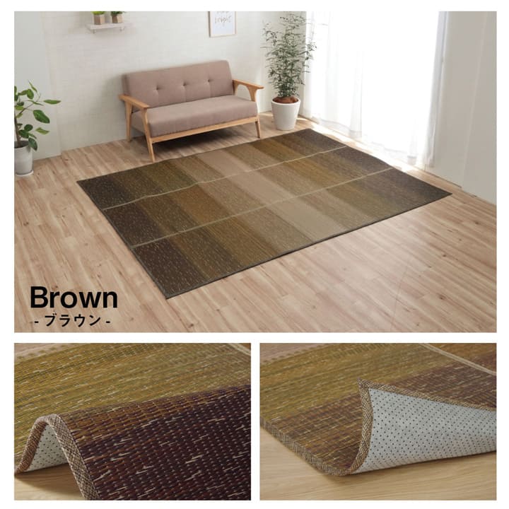 表地=い草※普通織 中材=ウレタン5mm 裏地=ポリエステル100%【滑り止め不織布】 ヘリ=ポリエステル100% |