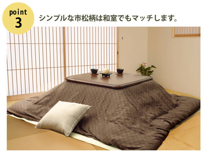 ■生地にインド綿を使用したこたつ上掛けです。シンプルモダンをテーマにデザインしておりますので、少し大人で素材感のあるお部屋のイメージにぴったりです。 ■表地は綿100%です。綿はポリエステル素材に比べ静電気が起きにくく、繊維の中でも特に肌触りがよいのが特徴です。さらに糸を先に染色してから織る技法を採用しておりますので、プリントものや後から染色するものとは違う上質な雰囲気があります。 ※掲載写真は表記サイズと異なる場合がございます。 ※画面上のカラーはご使用ブラウザやモニターの設定により、実物とは若干異なる場合がございます。あらかじめご了承の上、ご注文をお願いいたします。 |
