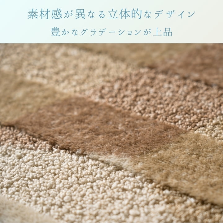 ■素材感の異なる立体的な模様と濃淡豊かなグラデーションが上品なボリュームラグです。 |