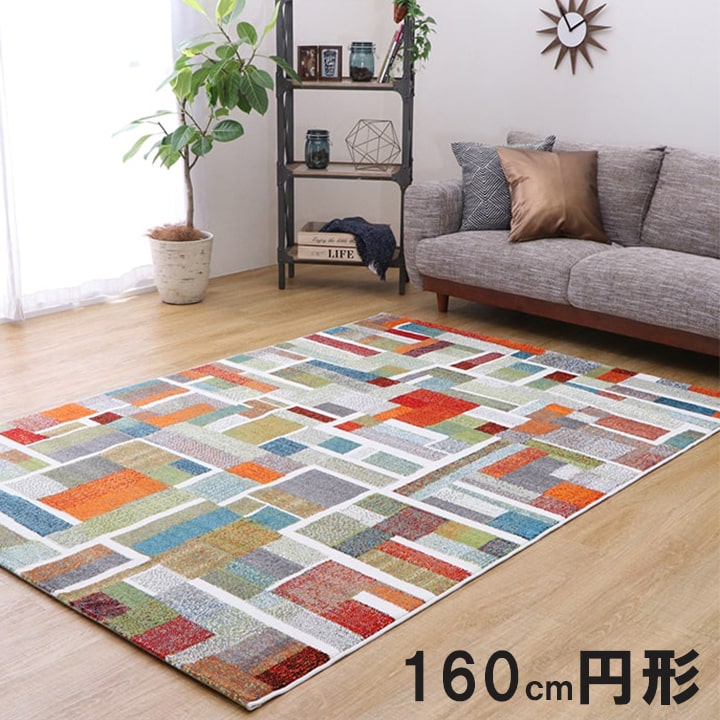 トルコ製 ウィルトン織りカーペット 円形 幾何柄 約160cm【メーカー直送商品】