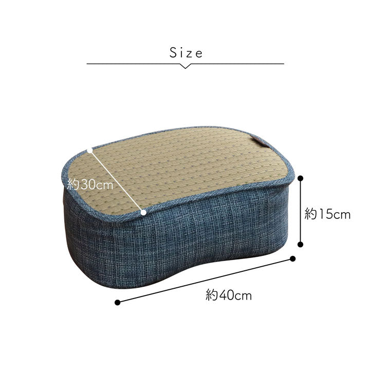 組成 | 表地=い草(織込メセキ) 裏地=ポリエステル 中材=ポリプロピレン+発泡ポリエチレン ※い草生地オモテ面にコバガード使用 |