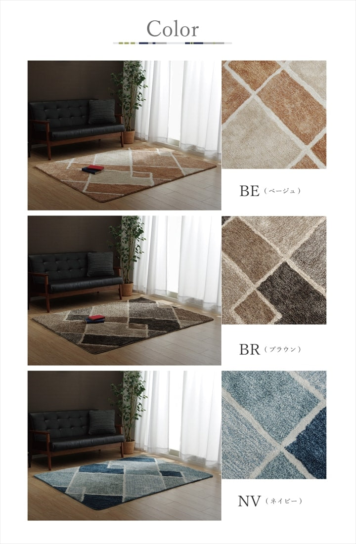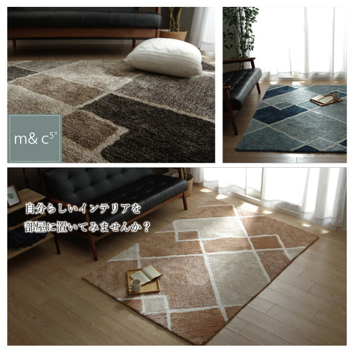 カーペット 1.5畳 幾何柄 手洗い可 滑り止め付き【メーカー直送商品】