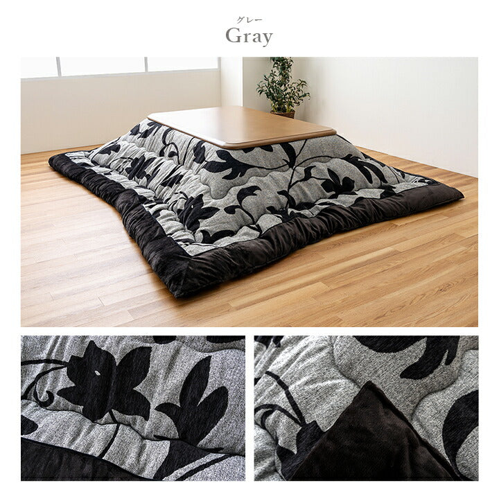 | ■お部屋を上品に魅せる、シックでエレガントなリーフデザインのこたつ布団です。 ■表地は凹凸感のあるシェニール織の生地を使用し、暖かみのある肌触りが特徴です。 ■裏地はフランネル生地で暖かいです。 ■国内で綿入れ加工をしているので、ふっくらとしたボリューム感のある仕上がりです。 ■環境にやさしいマッシュロンの中綿を使用しています。軽量ですがボリューム感のある保温性の高い綿になります。 |