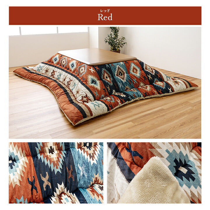 | ■華やかなデザインのキリム柄のこたつ布団です。 ■表地には肌触りの良い短毛マイクロファイバーを使用し、ふかふかの触り心地です。 ■裏地はフランネル生地で暖かいです。 ■国内で綿入れ加工をしているので、ふっくらとしたボリューム感のある仕上がりです。 ■環境にやさしいマッシュロンの中綿を使用しています。軽量ですがボリューム感のある保温性の高い綿になります。 |