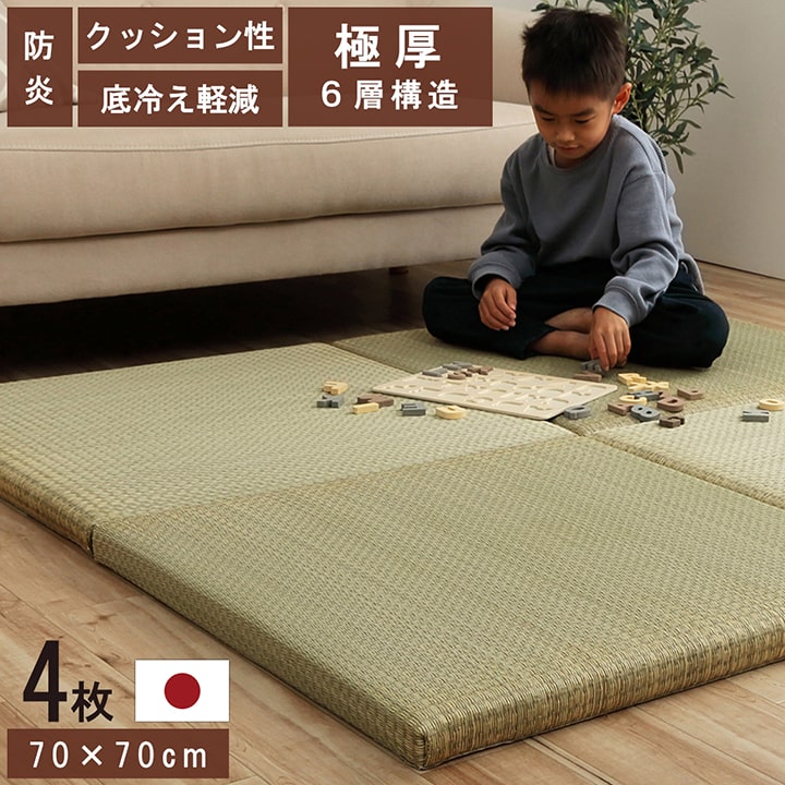 国産 い草 日本製 置き畳 ユニット畳 簡単 和室 6層 約70×70×4.5cm 4P 【メーカー直送商品】
