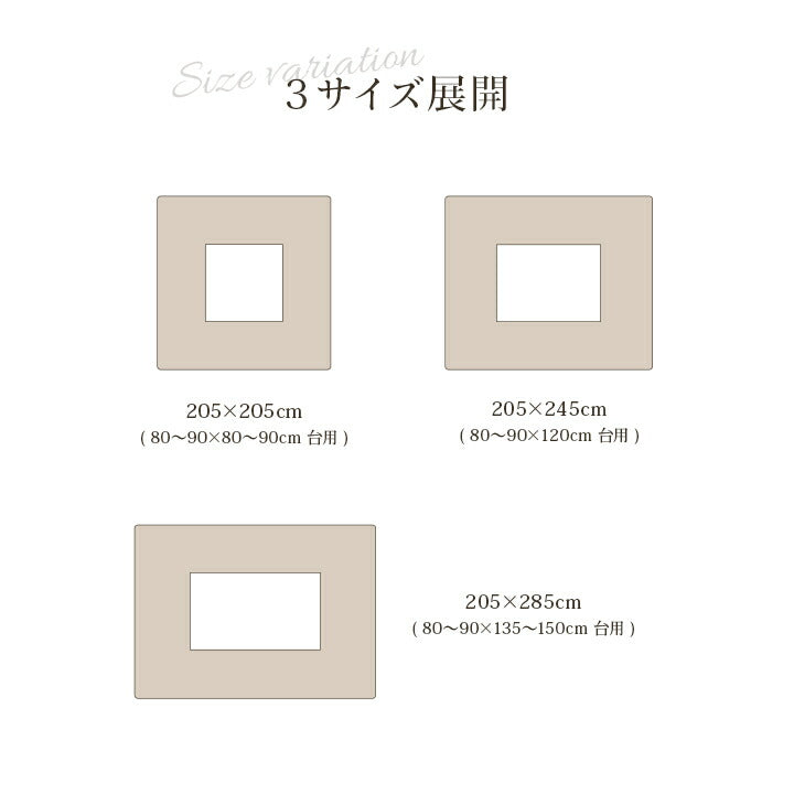 ・約205×205cm ・約205×245cm ・約205×285cm |