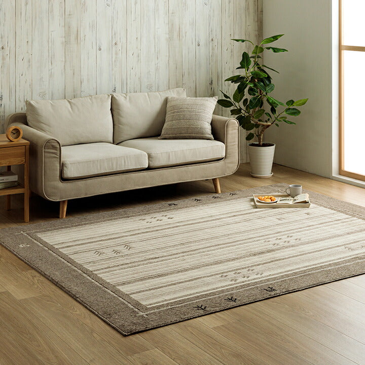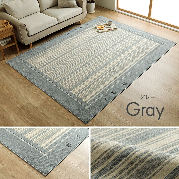 ■抗菌防臭・消臭効果・抗ウイルス効果のあるカーペットです。 ■密度が高く生地もしっかりしているため、めくれにくいのも特徴です。 ■毛足が短いためゴミが絡まりにくくお掃除しやすいだけでなく、ロボット掃除機もラクラク乗り越えることができます。 ■淡い色合いがかわいらしく、ギャベ柄なのにシンプルなデザインです。 ■ホットカーペットや床暖房にも対応できます。 ■使わない時は折りたたんでコンパクトに収納できます。 |