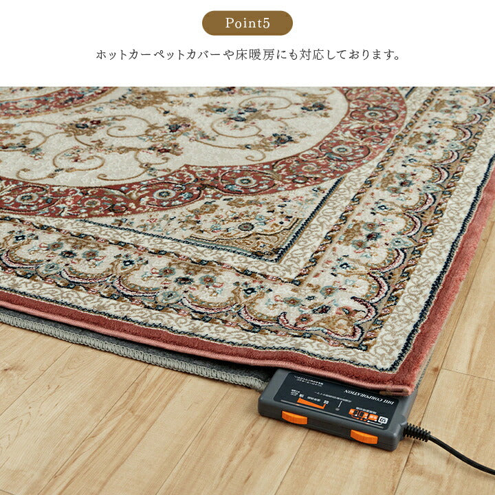 ■アイボリーホワイトベースで可愛らしいクラシック柄のウィルトンラグ。 ■特殊な糸をつかって表現されたデザイン柄が高級感と可愛らしさを引き出してくれます。 ■汚れが付着しにくく、遊び毛や毛玉が出にくいという特徴のポリプロピレン糸を使用しています。 ■緯糸にはジュート糸が使われており、抗菌防臭・消臭効果もあります。 ■ホットカーペットカバーや床暖房にも対応しております。(ラグに厚みがある場合・ラグの密度が高い場合は、熱が伝わりにくくなる場合がございます。) |