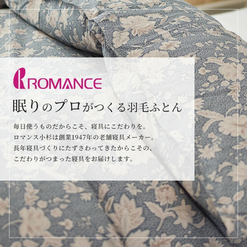 羽毛布団 1.2キロ マザー ダウン95% 冬用 シングルサイズ ロマンス小杉 日本製 ダウンパワー440DP以上 再生繊維 150×210cm