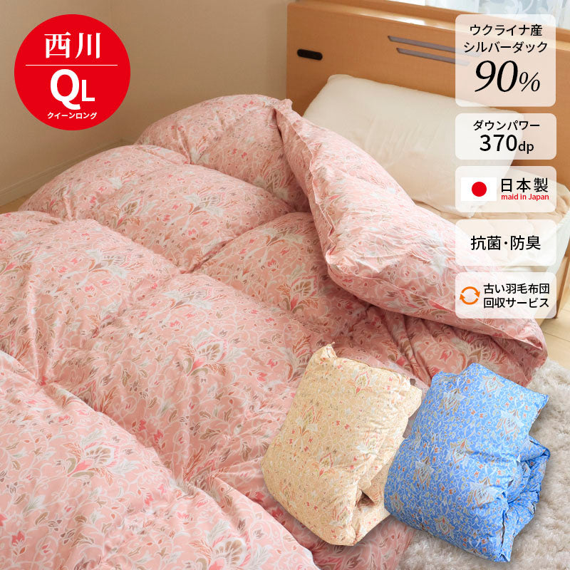 羽毛布団 クイーン ウクライナ産ダウン90% 西川 不要ふとん回収サービス・収納ケース付 日本製