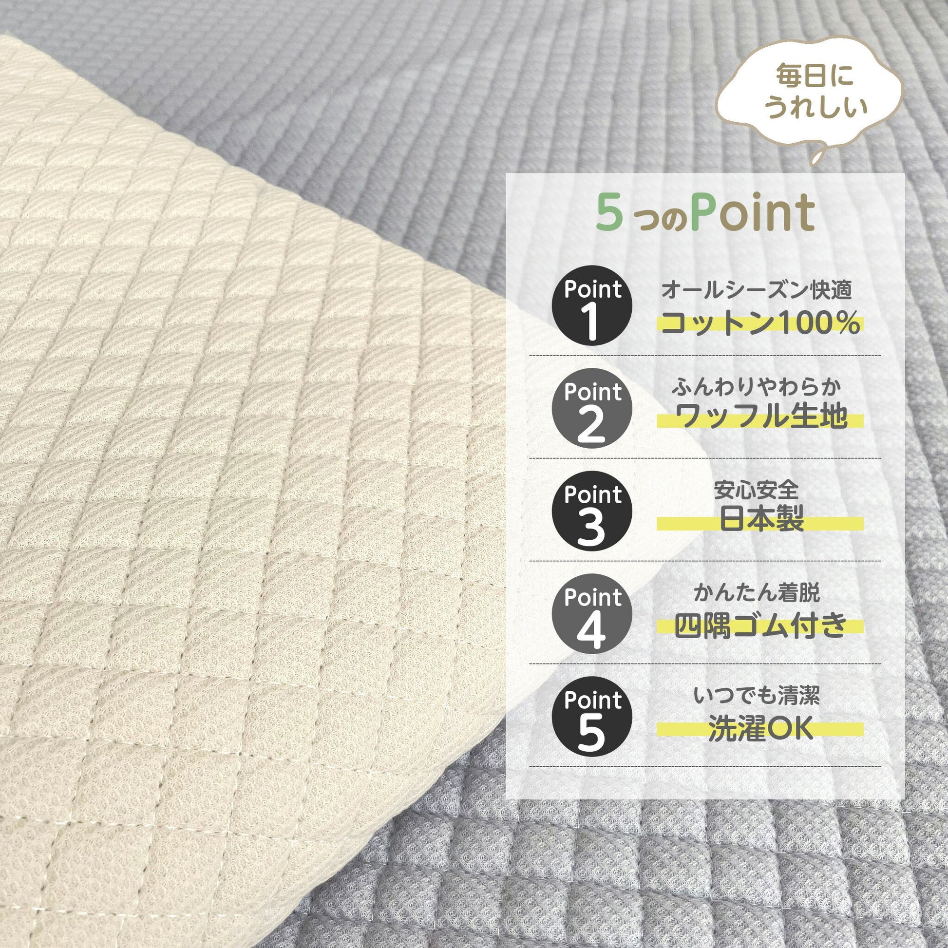 ■その他:綿ワッフル・四隅ゴム付き・ウォッシャブル