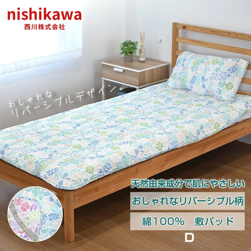 西川 リバーシブル柄 敷きパッド ダブル 天然素材100%