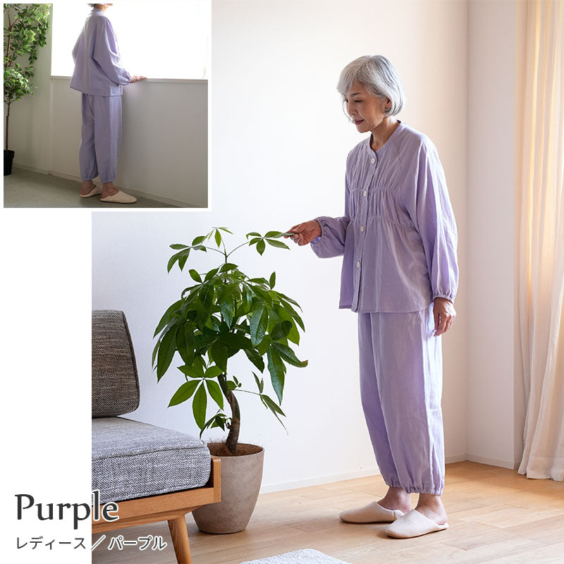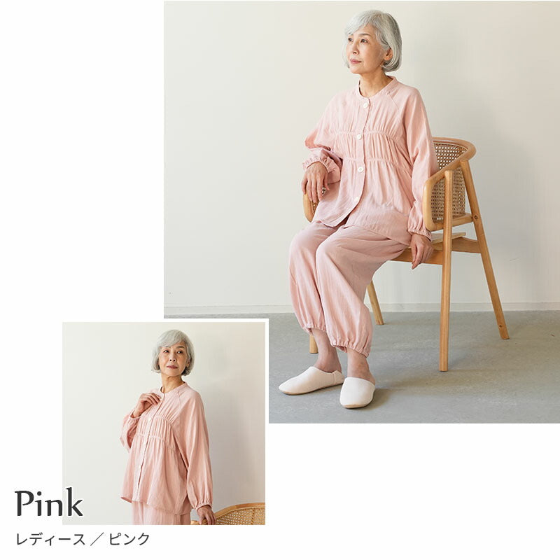 着る保湿クリーム 肌にやさしいルームウェア S93152-50 シャーリング パジャマ スリーピングウェア 乾燥対策 綿100% コットン ギフト対応 レディース 部屋着 長袖 介護用 前開き シニア向け 敬老の日 母の日 プレセント 贈り物に