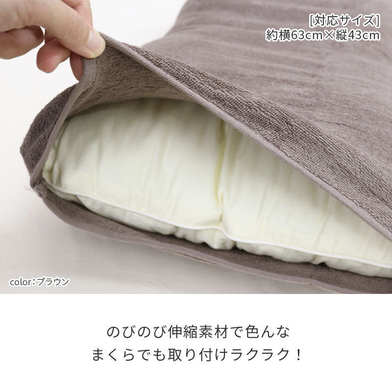 タテに伸びるので、色々なサイズ、形状の枕にフィットします。(約63×43cmの枕に対応)